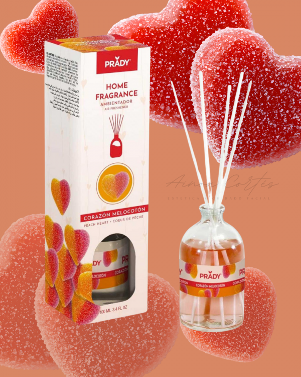Ambientador decorativo MIKADO CORAZÓN DE MELOCOTÓN, fabricado en España con alcohol y esencias naturales.