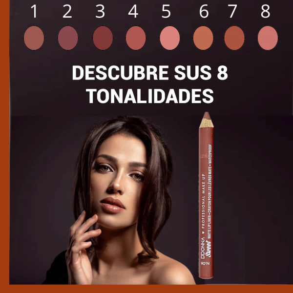 D’donna Sweet Professional son perfiladores de labios en tonos marrones mate con una textura muy suave y cremosa que se desliza suavemente por tus labios. Puedes utilizarlo como perfilador pero también como labial, tiene 8 tonos para elegir  muy pigmentados y con una textura aterciopelada. Son waterproof y de larga duración.