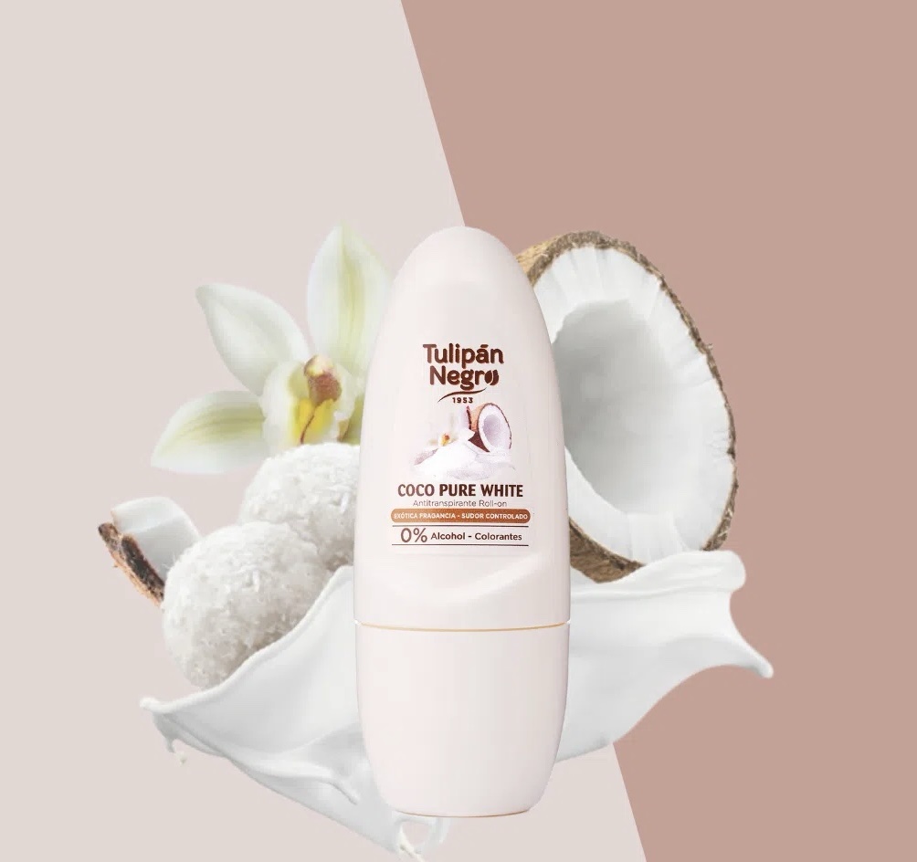 Desodorante roll on tulipán negro COCO PURE WHITE antitranspirante 50ml
