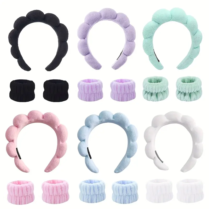 Haz de tu rutina de belleza un momento más cómodo y elegante con el Pack de Diadema y Muñequeras para Skincare
